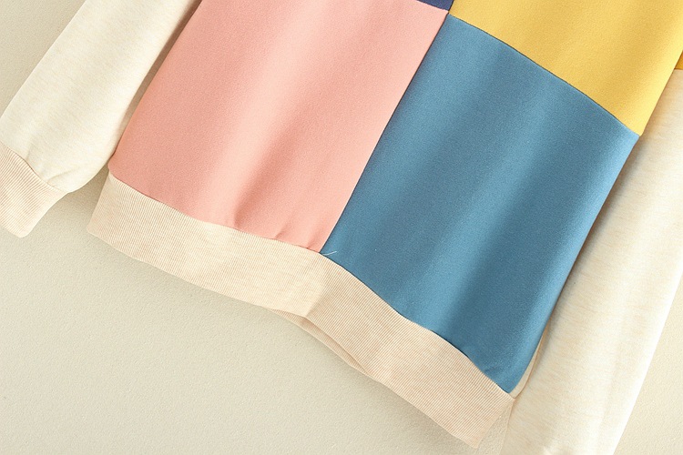 S7792 韓版秋裝時尚四色拼接套頭衛衣簡約風運動女裝外套加絨